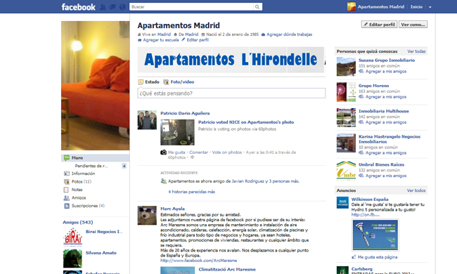 Red social Facebook Apartamentos Madrid.