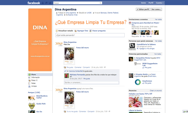 Red social Facebook para Dina Argentina.