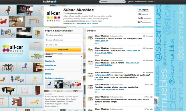 Red social Twitter para Silcar Muebles.